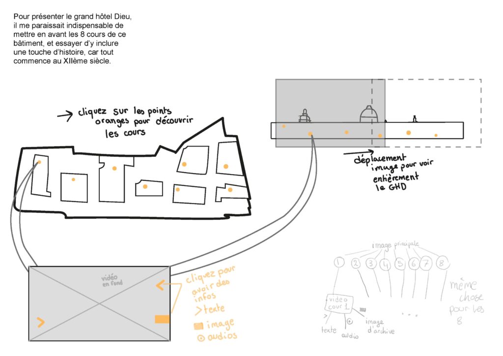 The goal of this project was to design a tablet interface presenting the portrait of a Lyon landmark. I chose the Grand Hôtel Dieu for its rich history and iconic presence in the city. This research dossier proposes various visual and functional approaches for a tactile user experience.