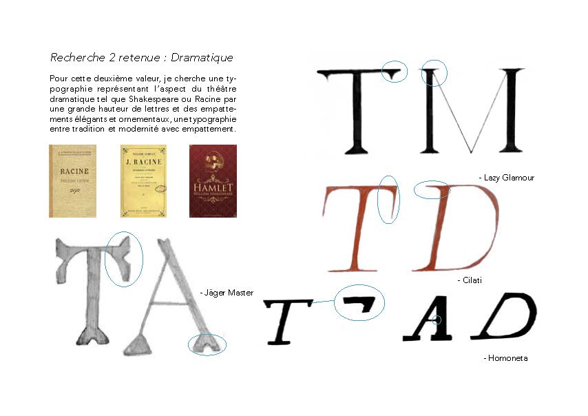 je me suis inspirée de l’univers du théâtre classique et j’ai cherché à traduire une intensité visuelle à travers la typographie.