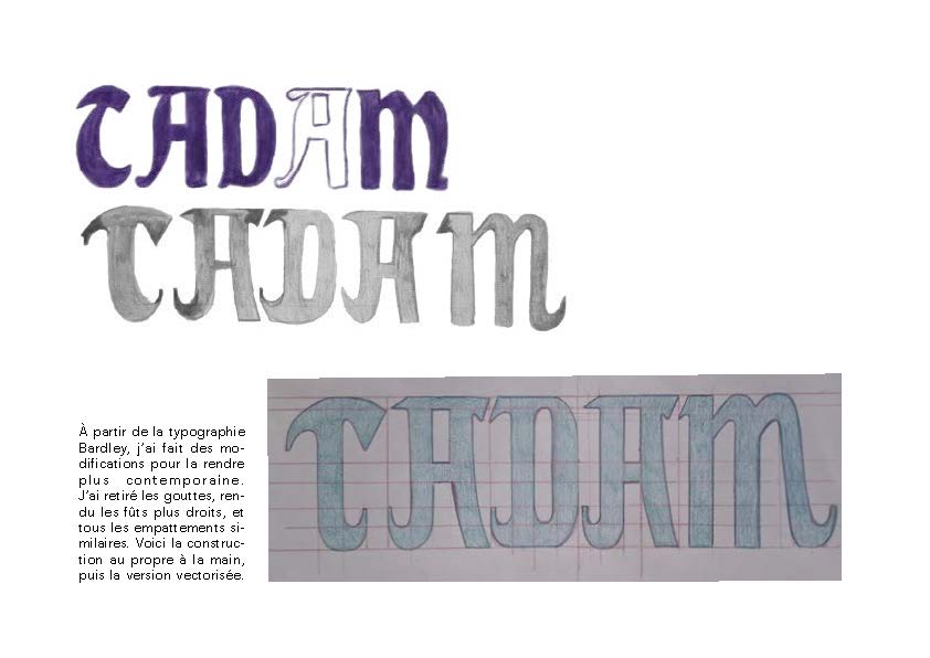 Pour cela, je me suis basée sur la typographie Bradley, que j’ai retravaillée afin de la rendre plus contemporaine : modification des empattements, simplification des ornements et ajustement de certains détails formels. Cette typographie a ensuite été redessinée à la main, puis vectorisée, afin d’être intégrée au motion design final.